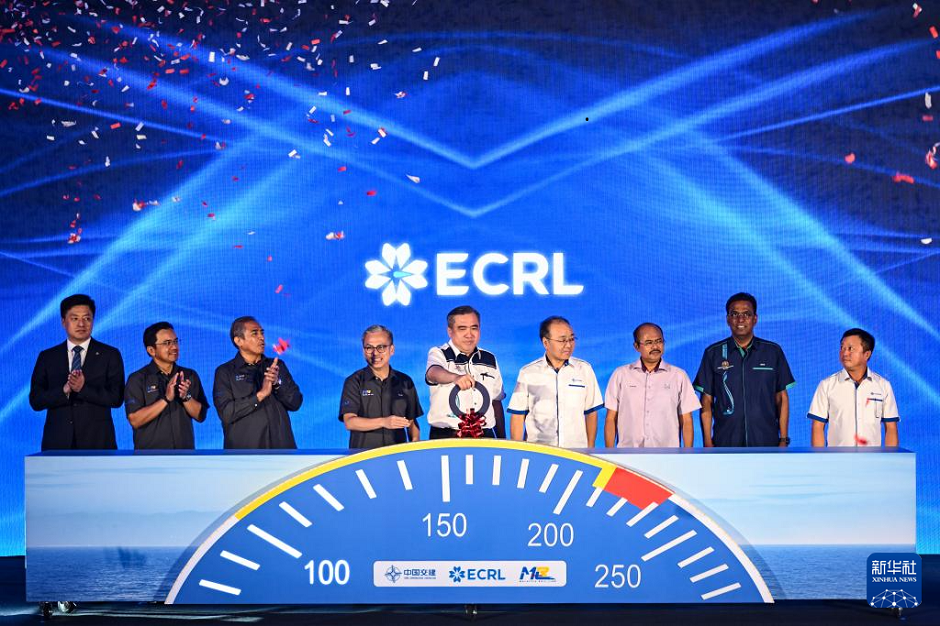 中国交通建设集团有限公司承建的马来西亚东海岸铁路(马东铁)项目首批动车组11日在马来西亚彭亨州州府车站苏丹阿末沙城站正式亮相。